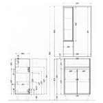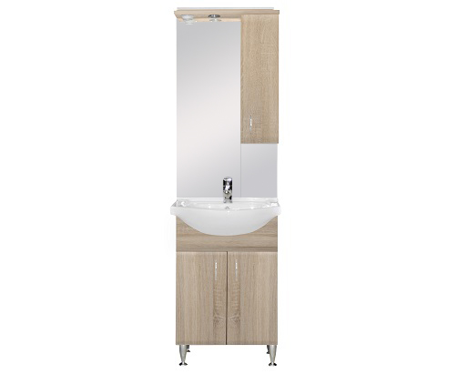 A fürdőszobabútor kevés helyet foglal viszont tágas alsó és felső szekrénnyel rendelkezik ahol kényelmesen elférnek a fürdőszobai pipere eszközök. Kevés helyigénye miatt kisebb fürdőszobák berendezésére is alkalmas, például panel lakásokban. A termék magas minőségű bútorlapból készül és színben passzoló élzárókkal van ellátva. A fürdőszoba bútor mosdóval együtt kapható.