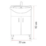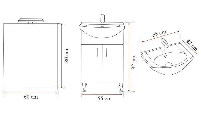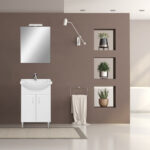 A fürdőszobabútor kevés helyet foglal viszont tágas alsó szekrénnyel és egy tükörrel (világítás nem része a terméknek) rendelkezik ahol kényelmesen elférnek a fürdőszobai pipere eszközök. Kevés helyigénye miatt kisebb fürdőszobák berendezésére is alkalmas, például panel lakásokban. A termék magas minőségű bútorlapból készül és színben passzoló élzárókkal van ellátva. A fürdőszoba bútor mosdóval együtt kapható.