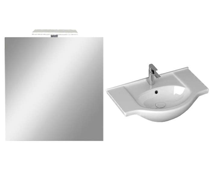 A fürdőszobabútor kevés helyet foglal viszont tágas alsó szekrénnyel és tükör (világítás nem tartozék) rendelkezik ahol kényelmesen elférnek a fürdőszobai pipere eszközök. Kevés helyigénye miatt kisebb fürdőszobák berendezésére is alkalmas, például panel lakásokban. A termék magas minőségű bútorlapból készül és színben passzoló élzárókkal van ellátva. A fürdőszoba bútor mosdóval együtt kapható.
