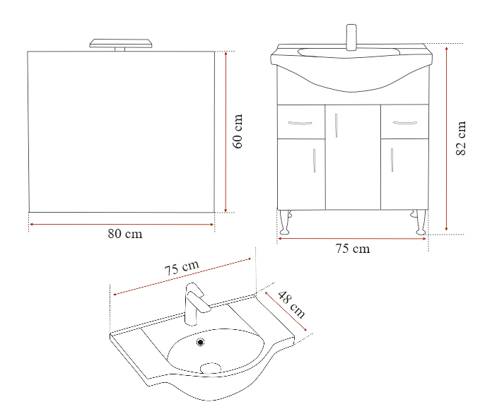 - Alsó rész mosdó nélkül : 80x72x33 cm (mosdóval : 82x75x48 cm )