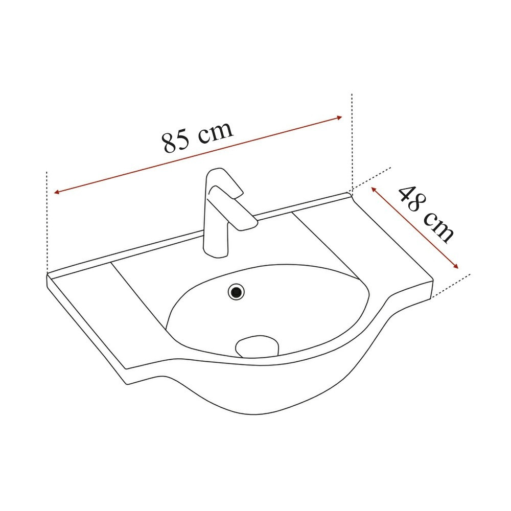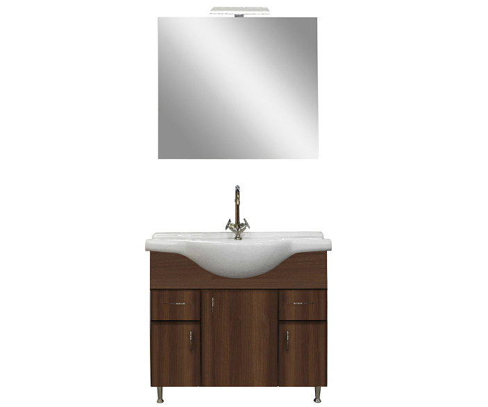 A fürdőszobabútor kevés helyet foglal viszont tágas alsó szekrénnyel és tükörrel (világítás nem tartozék) rendelkezik ahol kényelmesen elférnek a fürdőszobai pipere eszközök. Kevés helyigénye miatt kisebb fürdőszobák berendezésére is alkalmas, például panel lakásokban. A termék magas minőségű bútorlapból készül és színben passzoló élzárókkal van ellátva. A fürdőszoba bútor mosdóval együtt kapható.