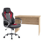 Ceron számítógépasztal Genesis gamer forgószékkelA Genesis Gamer forgószék és a stílusos Számítógépasztal LT5114 San Remo tölgy kiváló választás a gamerek és irodai munkavállalók számára, akik igénylik a kényelmet és az ergonómiát.Számítógépasztal LT5114 san remo tölgyTermék jellemzőiSzélesség108 cmMélység55 cmMagasság74 cmSúlya20,4 kgTermék leírásDTD (laminált)-A gyakori választásA laminált felület készítésekor egy faforgácslapot vonnak be mindkét oldalán faerezet mintájú, vagy színes papírral, majd ezt egy ellenálló, átlátszó műanyag borítással látják el. A gyártók előnyben részesítik ezt az anyagot, hiszen környezetbarát, rendkívül széles a választék színben és mintázatban, felülete jól tisztítható.Lapraszerelt kivitelLapraszerelt bútorainkat egyenesen a gyárból, gyári csomagolásban szállítjuk az otthonodba, ez típustól függően hungarocell, nylon és kartondoboz. A csomagolás megóvja a bútort a sérülésektől, tartalmazza a szükséges összeszerelési útmutatót, adott esetben a célszerszámot és ezek segítségével tudod összeszerelni a rendelt bútort. Amíg nem kívánod használatba venni, könnyedén tudod tárolni, mivel a karton, vagy nylon csomagolás gondoskodik a bútor épségéről.Genesis gamer irodai forgószékTermékjellemzőkKartámaszPU,PVC, krómozottÜléslemezpillangósSzínPiros/FeketeGázliftkrómTalpkrómozottGörgőnylonTermékleírásSzereted a kicsit extrább és kényelmesebb megjelnésű gamer székeket? Ebben a székben jobban fog menni a játék!A Genesis gamer szék ideális azoknak, akik a tökéletes kényelmre vágynak. A szék ergonómikus kialakításnak köszönhetően gerinc kímélő. A szék előnye a Tilt mechanizmus, amely a legmagasabb minőségű kényelmet garantálja munka közben.A Tilt mechanizmus lehetővé teszi a szék magasságállítását, a ringató funkciót a háttámla ellenállásának beállításával, valamint az ülés rögzítését a háttámlával egy pozícióban. A kárpitozáshoz használt anyag kiváló minőségű eco-bőr fekete / piros / szürke színben. A szerkezet és a karfa króm színű fémből készült. A kényelmesebb ülés érdekében a könyöklők eco-bőrrel vannak kárpitozva.A genesis gamer szék paramétereiAz alsó rozetta kerekekkel van felszerelve, amelyek garantálják a könnyű kezelést. A fotel méretei (SzxMéxMa): 61×48×109 cm. Az ülésmagasság az ülés alatt elhelyezett mechanikával állítható 43–53 cm tartományban. Kényeztesse magát ezzel a luxus darabbal, amely modern irodának vagy dolgozószobának is megfelel. Az ülés szélessége 50 cm, az ülés mélysége 47 cm. A maximális teherbírás 110 kg. Szuper kényelmes a gamer kedvelőknek! A Genesis funkcióiA szék számos klassz funkcióval rendelkezik, amelyek biztosítják a 100%-os kényelmet. Stílusos piros és fekete színkombinációja színt visznek a szobába. A játék ebben a fantasztikus Gamer székben egy igazi élmény lesz.Termékméret