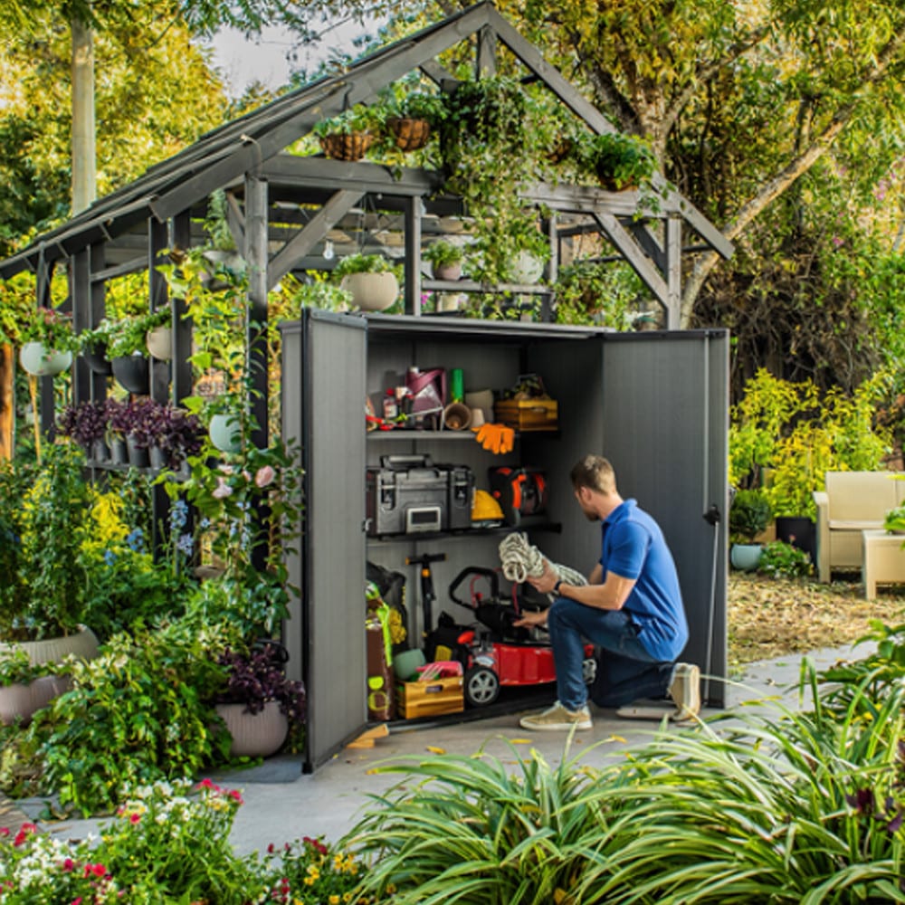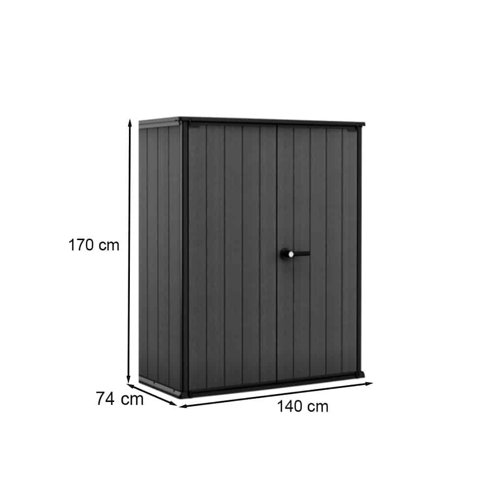A Cortina Alto műanyag kerti tároló ideális szerszámok, kerti felszerelések, tartozékok és háztartási cikkek tárolására. A masszív szerkezetű Cortina tökéletes választás, ha univerzális és nagy kapacitású tárolórekeszre van szükséged.