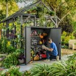 A Cortina Alto kerti tároló két polccal lett felszerelve, amelyek tökéletesen alkalmasak a kisebb kerti szerszámok, slag vagy kertész kesztyűk rendezett és átlátható tárolására.