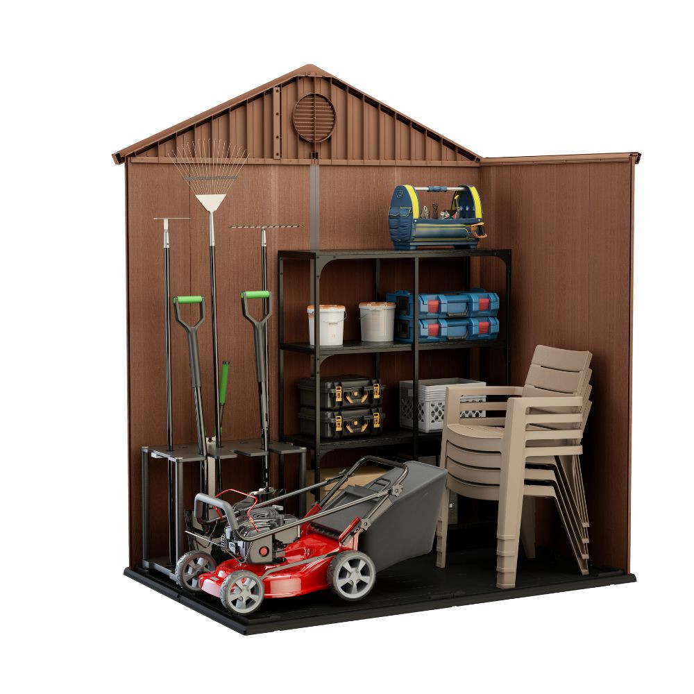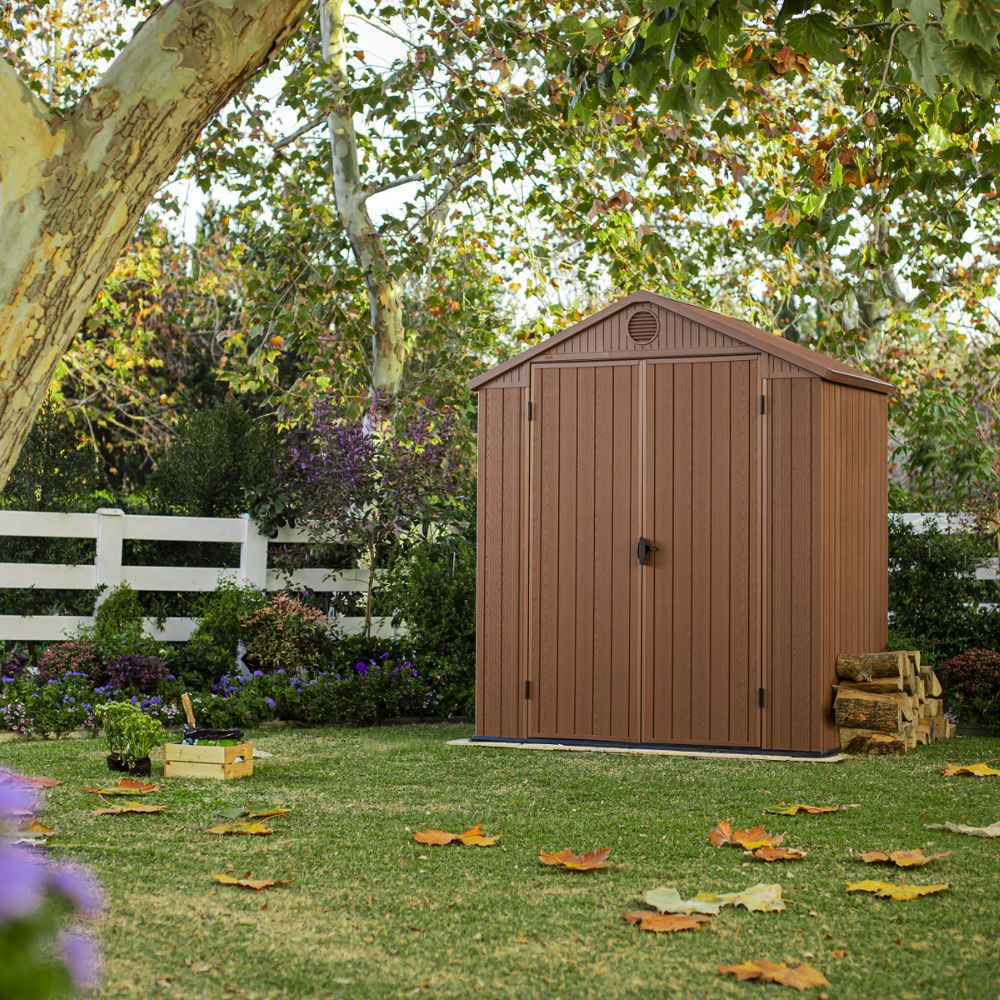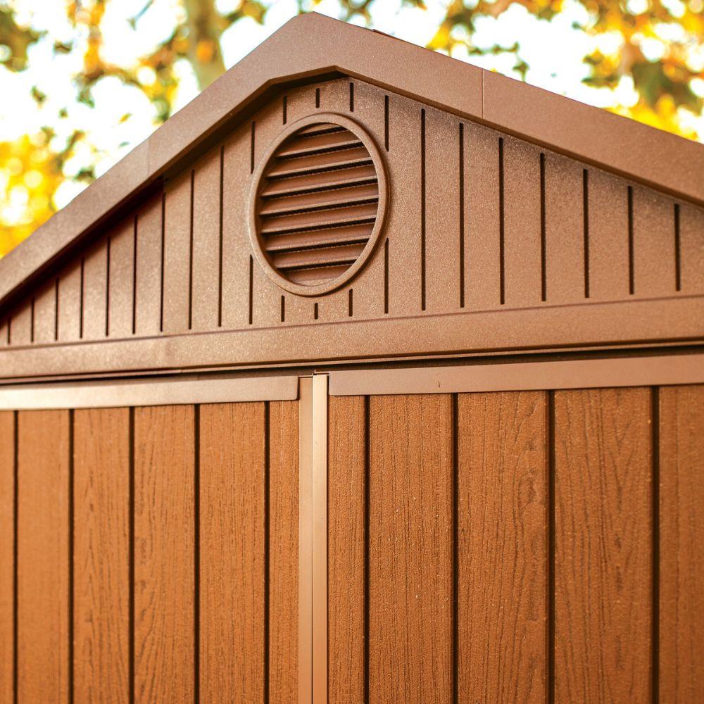 16 mm-es duplafalú panelek nagyobb szilárdságot és merevséget biztosítanak. A nagyobb biztonság érdekében zárható. A dupla ajtó megkönnyíti a tárgyak be- és kihozását. A mennyezet elég magas ahhoz, hogy egy felnőtt kényelmesen mozoghasson belül. Szellőzést tartalmaz, hogy megakadályozza a szag felépülését. A padlólemez véd a sár és az esővíz ellen. Igazán tökéletes a kertedhez.
