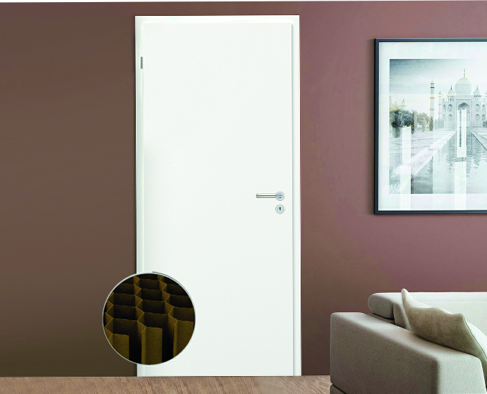 Papírrács belső kitöltés Speciális technológiai eljárással készülő, méhsejt szerkezetű kartonpapír belső kitöltés az ajtólap fa keretszerkezetei közötti szabad területeken. |