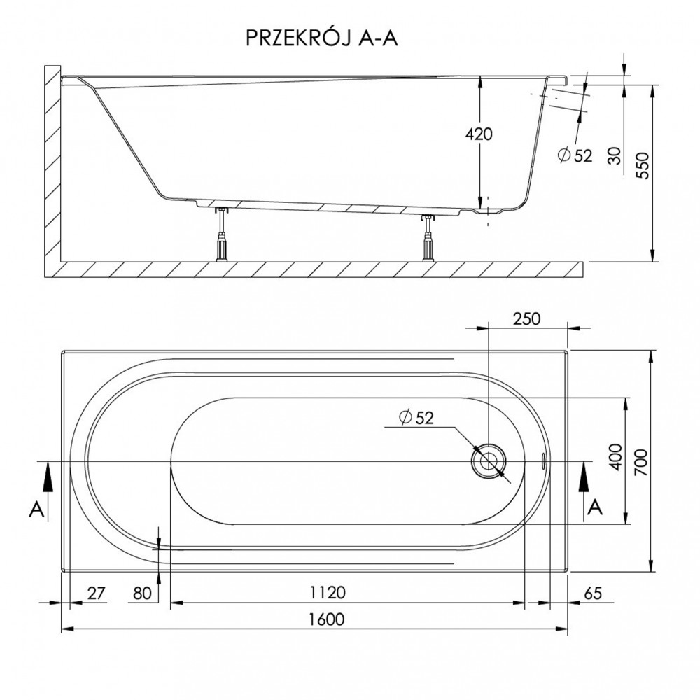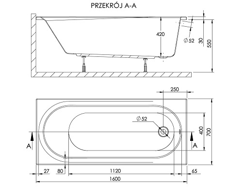 Dida 160 egyenes kád