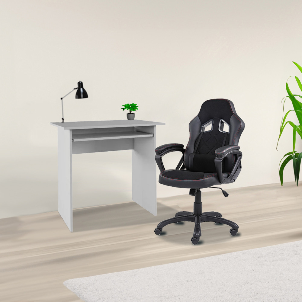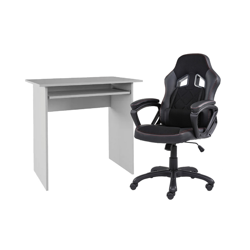 Elan számítógépasztal Gamer forgószékkelAz Elan Számítógépasztal Gamer Forgószékkel kombinációja a játék és a munka tökéletes összhangját hozza el a munkaterületedre. Ezen duó egyedi párosítása a modern dizájnnak és a kényelmes játékélménynek segít inspirált és hatékony munkakörnyezetet teremteni.Számítógépasztal LT5875, Fehér – Stílusos Elegancia és Funkcionalitás Egyben!A Számítógépasztal LT5875 egy modern és praktikus választás, amely a stílusos eleganciát és a funkcionalitást tökéletesen egyesíti. A DTD laminált anyag és a fehér szín harmonikusan ötvöződnek, miközben a kihúzható polc, a fiók és a méretek gondosan tervezett kombinációja optimális munkakörnyezetet teremt.Elegáns MegjelenésA fehér színű felület és a DTD laminált anyag magas minősége azonnal vonzza a figyelmet. A számítógépasztal modern és letisztult vonalai segítenek stílusos és inspiráló munkateret létrehozni, amelyben hatékonyan dolgozhatsz.Praktikus Kihúzható PolcA Számítógépasztal LT5875 rendelkezik egy kihúzható polccal, amely kiválóan alkalmas a billentyűzettel vagy egy noteszgéppel való munkához. A polc méretei (SzxMé) 65×28,6 cm, így elegendő helyet biztosít a kényelmes és hatékony munkavégzéshez.Optimális TárolóhelyekA fiók és a kihúzható polc mellett a szabad tér magassága a hátsó fal alsó széléig 52 cm, ami lehetőséget ad a munkafelület rendezett tartására és a szükséges munkaeszközök elhelyezésére. A fiók és a felső lemez közötti szabad tér magassága 7,7 cm, így könnyen elhelyezheted a papírokat és kisebb eszközöket.Tartós AnyagA Számítógépasztal LT5875 anyagvastagsága 16 mm, ami biztosítja a tartósságot és stabilitást. A DTD laminált anyag ellenáll a mindennapi használat során keletkező kopásnak és karcolásnak, így hosszú élettartamot nyújt.Kényelem és HatékonyságA Számítógépasztal LT5875 a kényelem és a hatékonyság tökéletes egyvelegét nyújtja. A kihúzható polc, a fiók és a tárolási lehetőségek segítenek rendszerezetten és kényelmesen dolgozni. Legyen szó otthoni irodáról vagy munkahelyi feladatokról, ez a számítógépasztal kiváló választás minden munkakörnyezetben.Gamer irodai forgószékTermékjellemzőkForgószék bevonatpu,pvc szövetÜléslemespillangósKartámaszfeketeGázlift2 osztályúTermékleírásGamer irodai forgószék a kényelem és elegancia ötvözete, amely irodai széknek is tökéletes. A stílusos, fekete részletekkel, hatásos kivarrásokkal ideális versenyzős karaktert kölcsönöznek egy kis eleganciával megspékelve. A gamer széknek univerzálisnak kell lennie és jó, ha más tevékenységekhez is használható. A modell ideális olyan irodai széknek, mely biztosítja a megfelelő kényelmet a munkahelyen. Gamer irodai forgószékPU, PVC, szövet borítással van ellátva az ülés és a háttámla is egyaránt. Fekete kartámaszai biztosítják a kar kényelmét. 2-es osztályú gázlift segítségével izlés szerint állítható az ülésmagasság 10 cm re. Tartós szerkezet, finom tapintású anyagok és a kényelemérzet teszi lehetővé, hogy a munkára, könyvolvasásra és játékra 100%-osan tudjunk figyelni.
