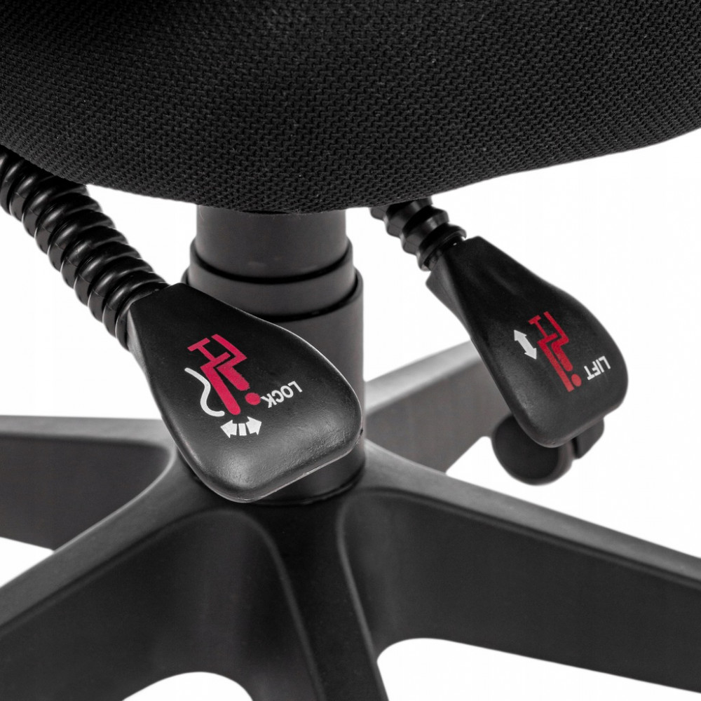 A számítógépes szék gázzal rendelkezik, amely lehetővé teszi a sima beállítást, amely lehetővé teszi a magasság beállítását a felhasználóhoz.Az ergonomikus irodai szék nejlon kerekei megvédik a padlót a karcolástól.