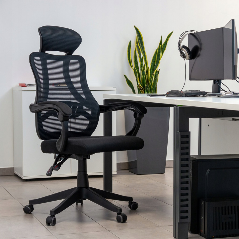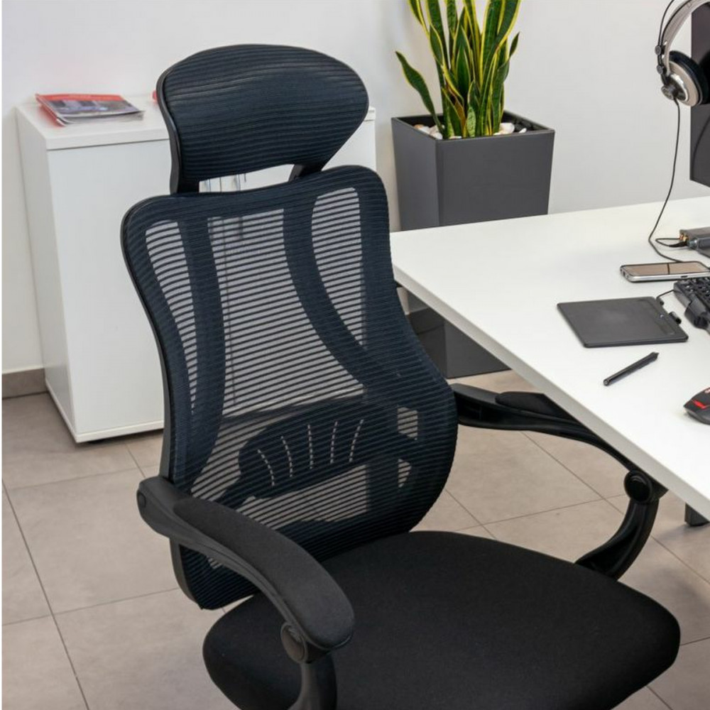 Az ergonomikus irodai karosszék a bőr számára kellemes hálós hálóból készült üléssel rendelkezik, melynek köszönhetően a légtér a háttámla és a háttámla között lehetséges . Az ergonomikus székek hálós hálóval tartósak és könnyen karbantarthatók. Az ergonomikus irodai szék olyan funkcióval rendelkezik, amely lehetővé teszi a háttámla fekvő helyzetbe állítását. Az irodai szék háttámla állító zárja lehetővé teszi a háttámla bármilyen szögben történő megállítását. Az ergonomikus fotel előnye, hogy az állítható háttámlát követve mozgatható kartámaszokkal rendelkezik.