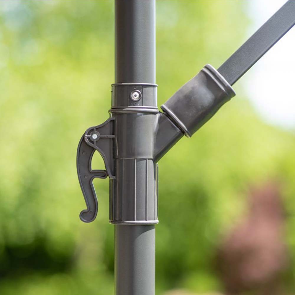 A kerti ernyő stabilitását jelentősen befolyásolja a kereszt talp. Az Ön kényelme érdekében egy fogantyú van rögzítve a termék összecsukásához. A kitámasztó tetején lévő lombkorona lehetővé teszi a lombkorona tetszőleges elhelyezését és bármely árnyékoló hely kiválasztását a napfény beesési szöge szerint. Az ernyő szellőzője lehetővé teszi a levegő keringését.