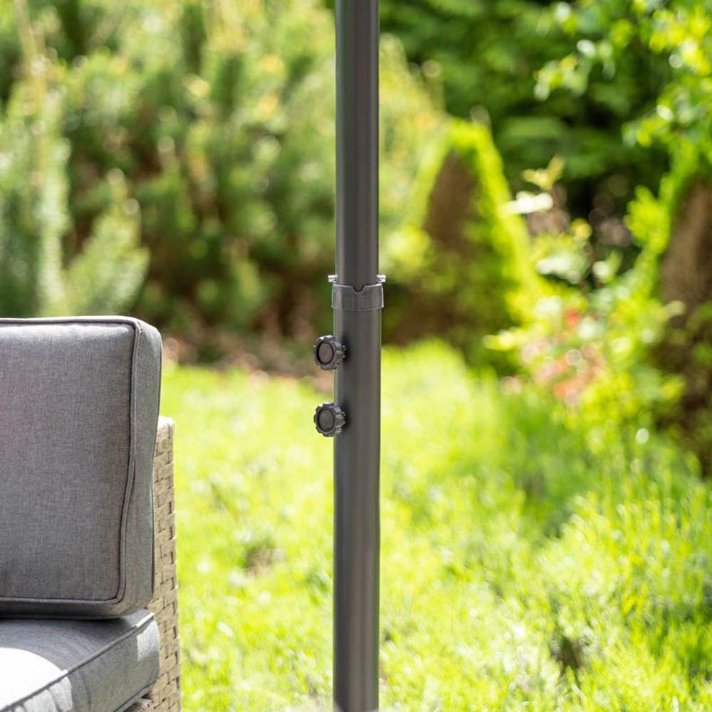A Garden Hero ernyő lehetővé teszi, hogy árnyékos helyet hozzon létre a kikapcsolódásra, a közös étkezésre vagy a szeretteivel való időtöltésre. A kerti felszerelések alapvető elemei a kerti napernyők. Kiváló védelmet nyújtanak mind a napsugárzás, mind a nyári eső ellen. A megnövekedett ernyő átmérő miatt további súlyt kell illeszteni az alapra.