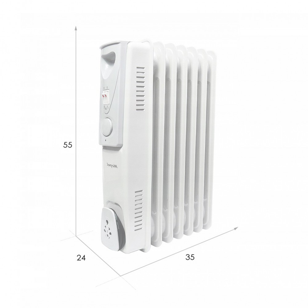 TermékleírásHH 1001 elektromos fűtőtest.7 bordás kivitelA nagyobb kényelem érdekében a radiátor 4 kerékkel van felszerelve. Kábeltartóval és leeső kapcsolóval. A fűtőtest falra is szerelhető.Termék méretei: 33,5 * 24 * 55cm.Túlmelegedés elleni védelemmelTeljesítményszintek: 600W 900W 1500W.HH 1001 Elektromos fűtőtestA kézzel állítható elektromos fűtőberendezés praktikus fogantyúval rendelkezik a könnyű hordozhatóság érdekében. Különösen hasznosak az alján lévő sima kerekek és az integrált szállítófogantyúk.A 7 bordás elektromos fürdőszoba radiátor ezen felül kábeltartóval rendelkezik, így nem zavarja a felhasználást. Akár falra is szerelhető. Elektromos radiátor:a kézi termosztát 3 fokozatú teljesítménybeállítást tesz lehetővé 600W / 900W / 1500Wa túlmelegedés elleni védelem biztosítja a biztonságos működéstfogantyúk és szállító kerekek megkönnyítik a hordozhatóságot3 fokozatú teljesítményszabályozásA fürdőszobai radiátor kézi termosztátjának köszönhetően a fűtési teljesítmény 3 fokozatban szabályozható : 600W, 900W vagy 1500W.A túlmelegedés elleni alapvető védelem mellett a görgős elektromos radiátor speciális előnye az automatikus kikapcsolási funkció túlmelegedés esetén. 1500W-os biztonsági elektromos fűtésA fűtőberendezés használható zárt otthoni helyiségekben – nappali, fürdőszoba vagy hálószoba -, valamint irodákban.Méretei és súlya megkönnyítik a készülék mozgatását.