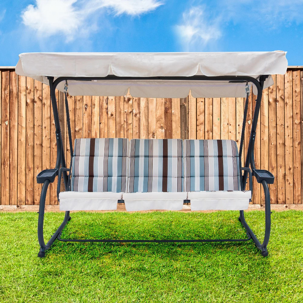A kerti hinta szerkezete porszórt acél, ami jelentősen befolyásolja a bevonat tartósságát. A kerti hinta tervezésénél poliésztert alkalmaztak amelynek köszönhetően az anyag nagyon kevéssé szívja fel a vizet. A felhasznált anyagokat a tartósság jellemzi.