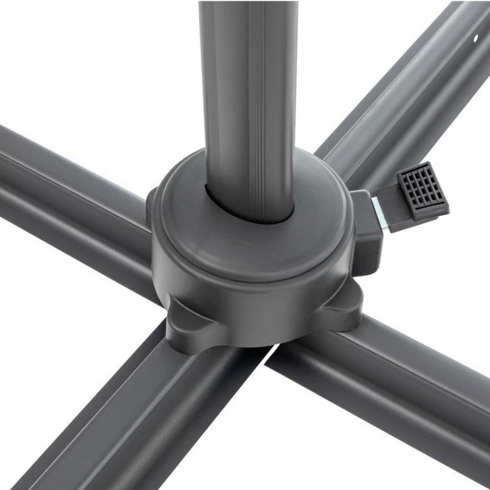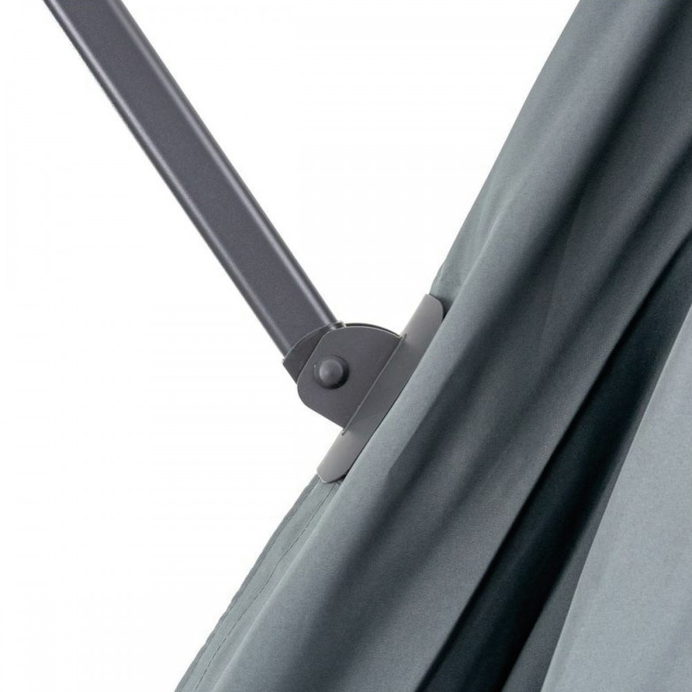 A kerti napernyő stabilitását jelentősen befolyásolja a kereszt talp. Az Ön kényelme érdekében egy rögzített fogantyú segítségével könnyen összecsukható. A napernyő előnye az alapban lévő forgó mechanizmus és a dőlésszög beállítás kombinációja. Ez lehetővé teszi az ernyő tetszőleges pozícionálását és az árnyékoló hely kiválasztását a napfény beesési szögének megfelelően.