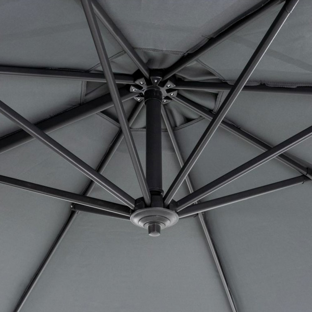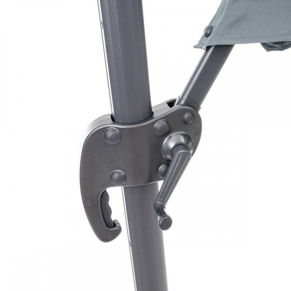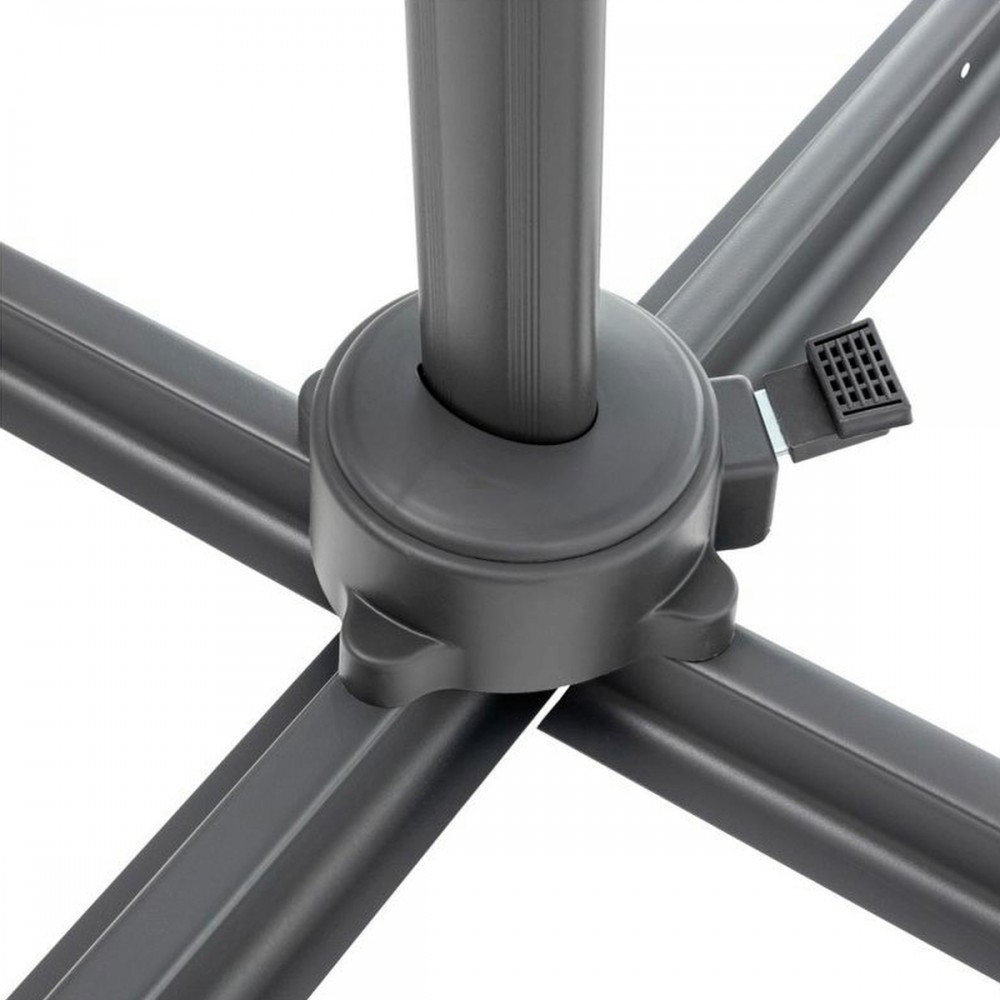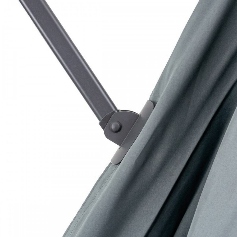 A kerti napernyő stabilitását jelentősen befolyásolja a kereszt talp. Az Ön kényelme érdekében egy rögzített fogantyú segítségével könnyen összecsukható. A napernyő előnye az alapban lévő forgó mechanizmus és a dőlésszög beállítás kombinációja. Ez lehetővé teszi az ernyő tetszőleges pozícionálását és az árnyékoló hely kiválasztását a napfény beesési szögének megfelelően.