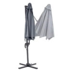 Az árnyékoló a szerkezet oldalán helyezkedik el, amely lehetővé teszi az árnyékolt tér 100% -os kihasználását. A napernyő lehetővé teszi, hogy árnyékos helyet hozzon létre a kikapcsolódásra, a közös étkezésre vagy a szeretteivel való találkozásra. A kerti felszerelések alapvető elemei a kerti napernyők. Kiváló védelmet nyújtanak mind a napsugárzás, mind a nyári eső ellen. A megnövekedett átmérő miatt további súlyt kell helyezni az alapra.