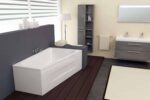 Asszimetrius sarokkád egyenes vonalakkal. Minimál vonalvezetésének köszönhetően a modern fürdőszobák tartozéka lehet. Falazott beépítés esetén nagy lapokkal is burkolható az előlap. Súly: 40 kg, Térfogat: 305 L