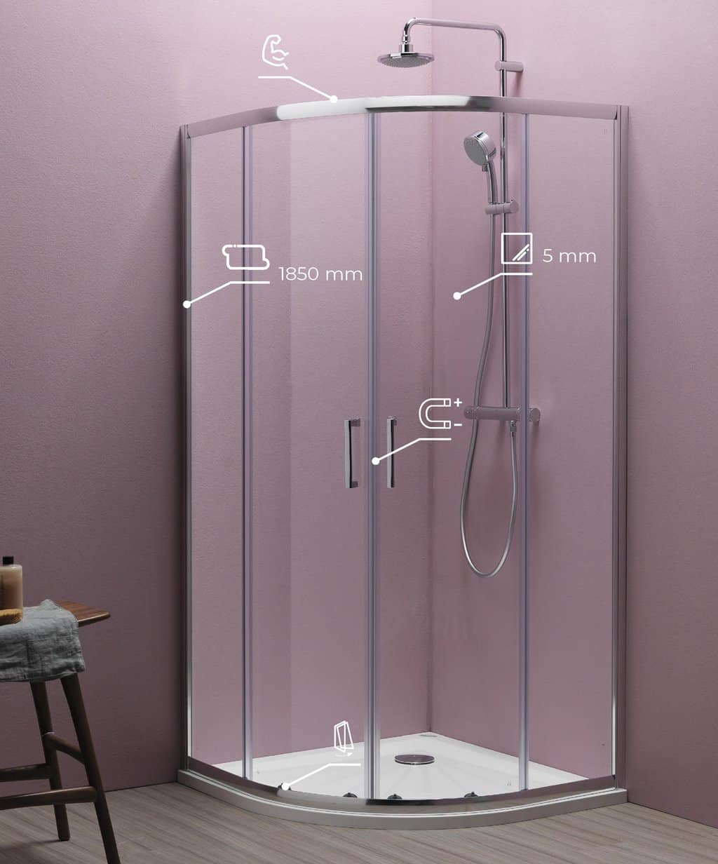 Kolpa San Eco Quat TKP 90×90 negyedköríves zuhanykabin ezüst profillal akciós csomagajánlat tálca és szifonnal