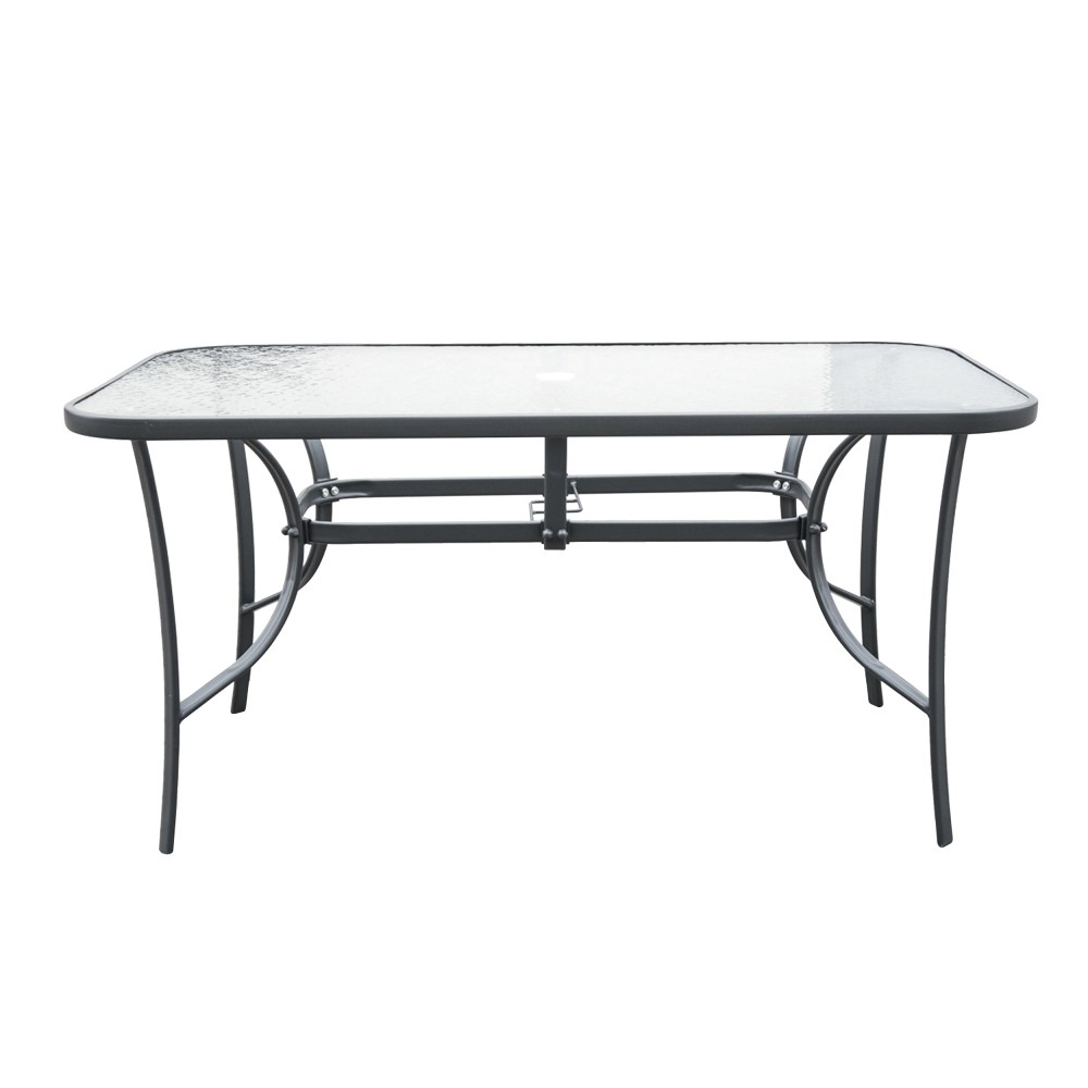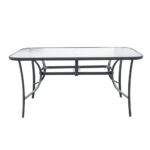 A kerti asztal szerkezete acélból készül. A teteje 5 mm-es edzett üvegből készül , amely ellenáll a kisebb karcolásoknak. A felhasznált anyagok biztosítják az időjárási viszonyokkal szembeni ellenállást.