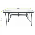 | Asztallap anyag | edzett üveg-5mm | Méret | 150x90x70 cm |