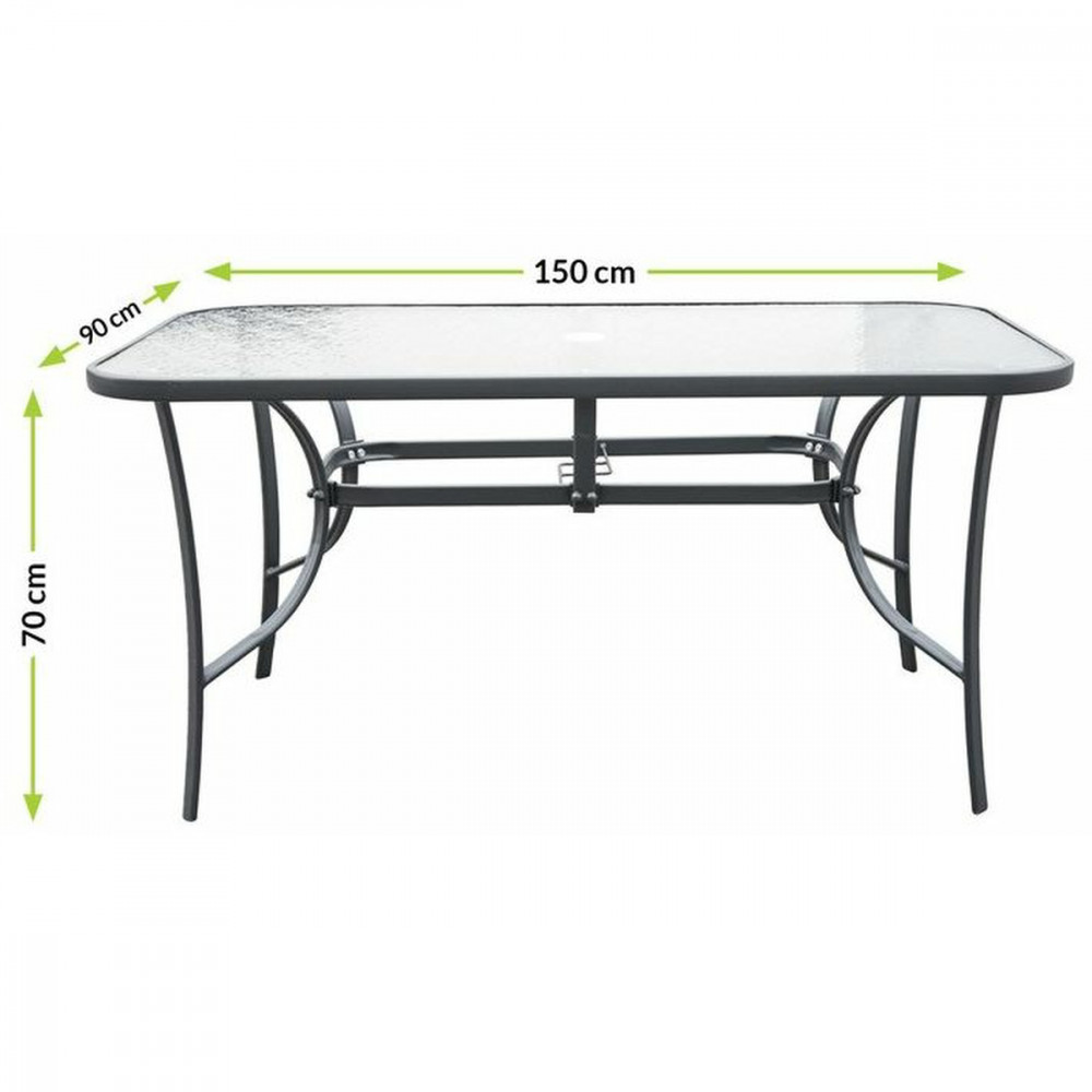 A modern kerti asztalt 6 fő számára terveztek , amely lehetővé teszi a bútorok használatát szeretteivel való találkozók során. Az egészet megfelelő magasságban tervezték, hogy kényelmesen ehessen ebédet vagy más ételt. Előnye a napernyő beépített furata, amelynek köszönhetően az ernyő használata lehetővé teszi az összes felhasználó egyenletes lefedését. Az asztalnak van egy nyílása az ernyő stabilizálásához.
