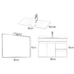 A fürdőszoba bútor tágas kialakítással rendelkezik ahol kényelmesen elférnek a fürdőszobai pipere eszközök. Kompakt kialakítása miatt kisebb fürdőszobák berendezésére is alkalmas, például panel lakásokban. A termék magas minőségű bútorlapból készül és színben passzoló élzárókkal van ellátva. A fürdőszoba bútor felfüggesztett kivitelben kapható.