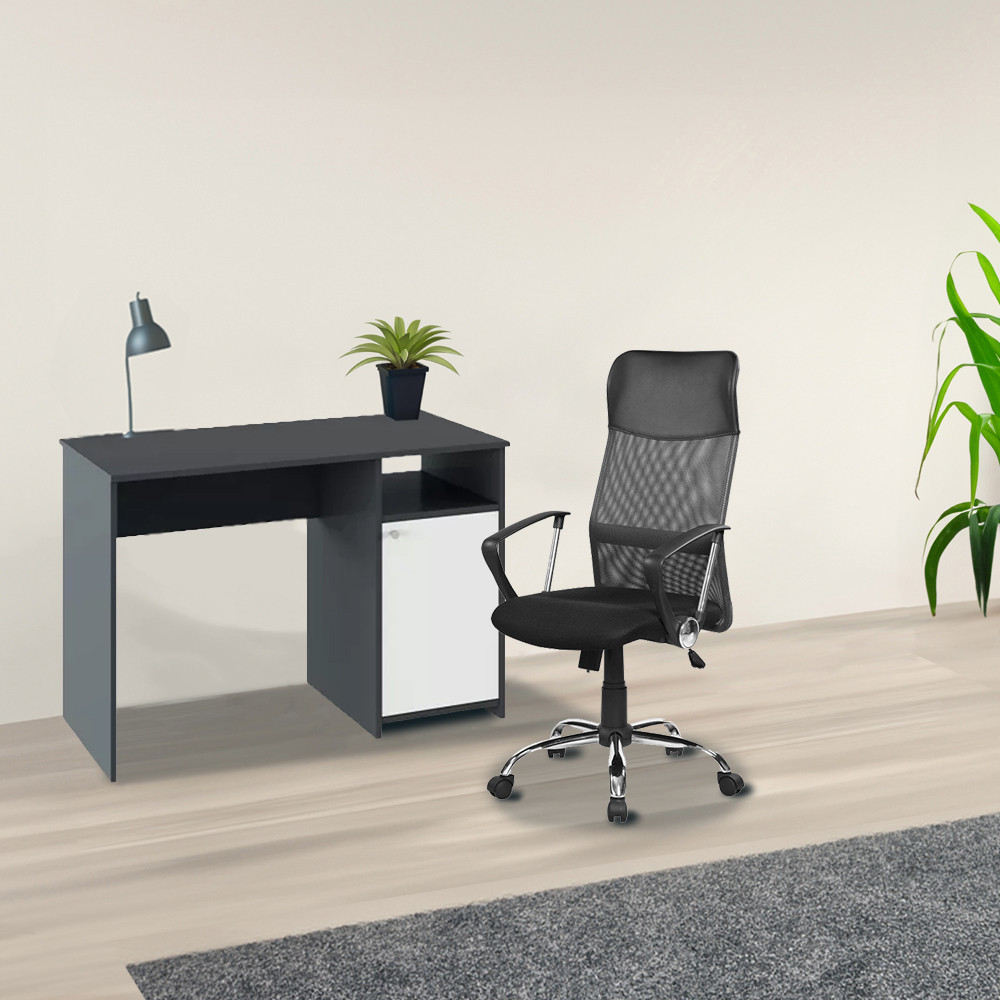 Lygon grafit-fehér számítógépasztal Fit forgószékkel