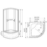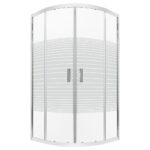 A zuhanykabin 4 mm-es edzett víztiszta, fehér csíkokkal díszített biztonsági üveggel van ellátva.A zuhanykabin íves kivitelben kapható. Dupla görgős ajtókkal van ellátva. A kabin 80x80x165 cm méretű.