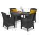 Ez a taupe színű, kényelmes és elegáns Maltor bútor szett négy 55x 58x 82 cm-es karfás széket és egy 80x 80x 74 cm-es négyszögletes magas asztalt foglal magába. Ez az 4 személyes kerti bútor szett elegendő helyet biztosít az egész család számára, hogy a szabad levegőn tudjátok tölteni az időt. Nagyszerű választás, ha napközben szeretsz az udvaron pihenni és olvasgatni. Alkalmas családi összejövetelekhez. Ez a szett minden udvart és teraszt színesebbé tesz modern megjelenésével.