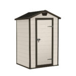 A rendkívül kompakt és tartós Manor 4×3 ügyes tárolási megoldást kínál a legszűkebb helyekre, különösen a ház és a kerítés közötti résekre. Időjárásálló, kettős falú szerkezettel és padlólemezzel rendelkezik, amely tárolja az elemeket tiszta és száraz állapotban. Ez a fészer biztonságosan szellőztethető, biztonságosság érdekében reteszelhető és háztartási szerszámok segítségével könnyen összeszerelhető.