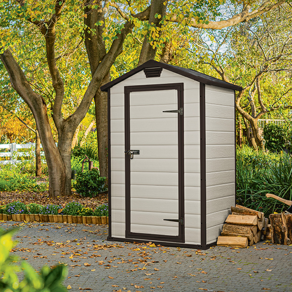 A Manor 4×3 kerti ház funkcionális, műanyagból készült kerti felszerelés, amelynek köszönhetően rendben tarthatja szerszámait és egyéb kerti felszereléseit. A Keter gyártotta, amely kiváló minőségű műanyag gyártására szakosodott. A Keter a világ egyik vezető gyártója. A Keter Manor kerti ház egyszerű és gyors megoldás azoknak, akiknek megfelelő kerti tárolóhelyük van. Egy ilyen szerszámház elhelyezéséhez a kertben nincs szüksége építési engedélyekre.