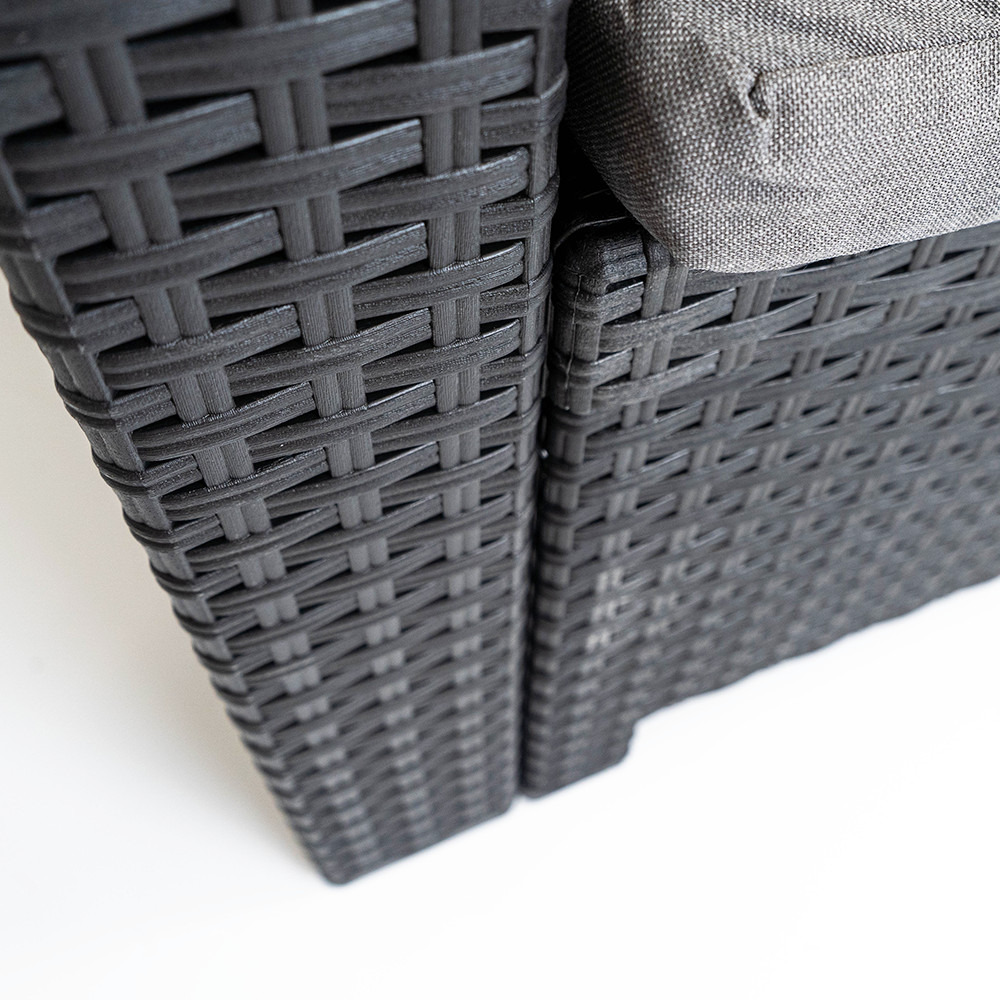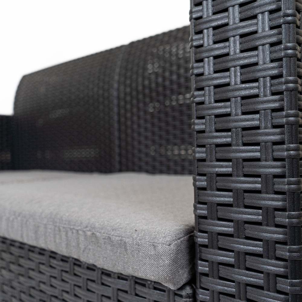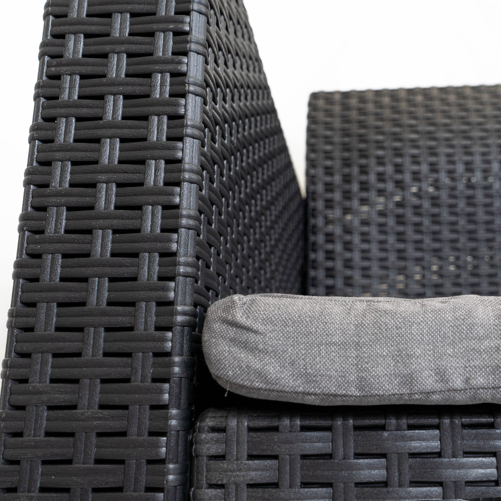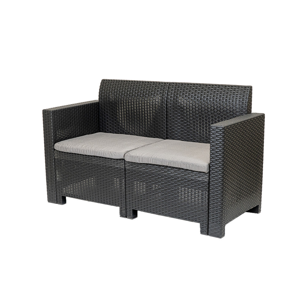Ez egy elegáns és kényelmes két személyes kerti kanapé párnával kompletten. A grafit szín és az eredeti rattanra emlékeztető felület mind a modern, mind a klasszikusabb stílust kedvelők igényeit kielégíti. Időtálló darab, hiszen az UV sugárzásnak és az időjárás viszontagságainak ellenálló műanyagból készült, kint hagyhatod a tűző napon, vagy egy nyári záporban. A kanpéhoz kényelmes, színban harmonizáló ülőpárna is tartozik, melyek fokozzák a kényelmét. Könnyen mozgatható, de mégis stabil, nem burulékony darab, így jól bírja a terhelést is. A Nero két személyes kerti kanapé sokoldalú kiegészítő lehet otthonodhoz, kertedhez, de egy étterem teraszán is kényelmes ülőhelyként szolgálhat.