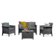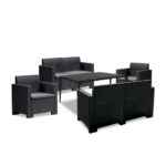 6 személy kényelmesen leülhet a kertben, vagy a teraszon. Olyan teremt, mintha a nappaliban lennétek, hiszen a kanapék és fotelek kényelmes környezetet termetenek egy kellemes beszélgetéshez, vagy grillpartihoz.