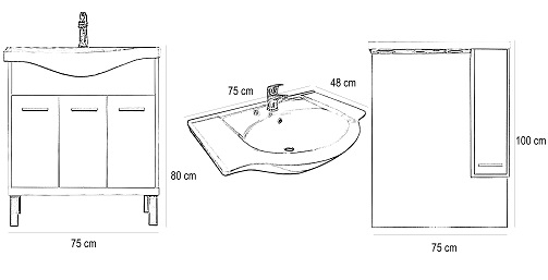 - Alsó rész mosdó nélkül : 80x75x33 cm (mosdóval : 82x75x48 cm )