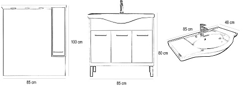 A fürdőszobabútor kevés helyet foglal viszont tágas alsó és felső szekrénnyel rendelkezik ahol kényelmesen elférnek a fürdőszobai pipere eszközök. Kevés helyigénye miatt kisebb fürdőszobák berendezésére is alkalmas, például panel lakásokban. A termék magas minőségű bútorlapból készül és színben passzoló élzárókkal van ellátva. A fürdőszoba bútor mosdóval együtt kapható.