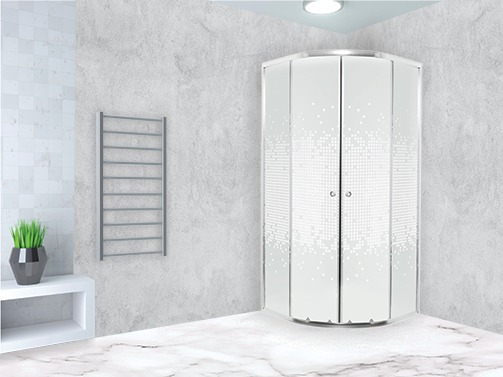 A Pixel White íves zuhanykabin kialakításának köszönhetően tágas teret biztosít használójának tusolás közben. Dupla tolóajtója megkönnyíti a ki-be lépést a zuhanykabinba. A pixel hatású design különleges megjelenést biztosítanak neki. Aluminium, króm profilokkal van ellátva.