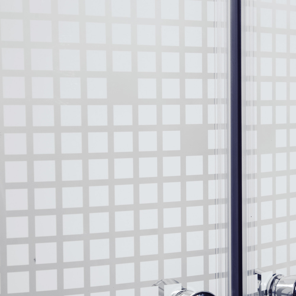 A zuhanykabin 4 mm-es edzett üvegből készült.Fehér dekor négyzetekkel díszített biztonsági üveggel van ellátva.A zuhanykabin íves kivitelben kapható. Dupla görgős ajtókkal van ellátva. A kabin 88x88x183 cm méretű. A zuhanytálca nem tartozék!