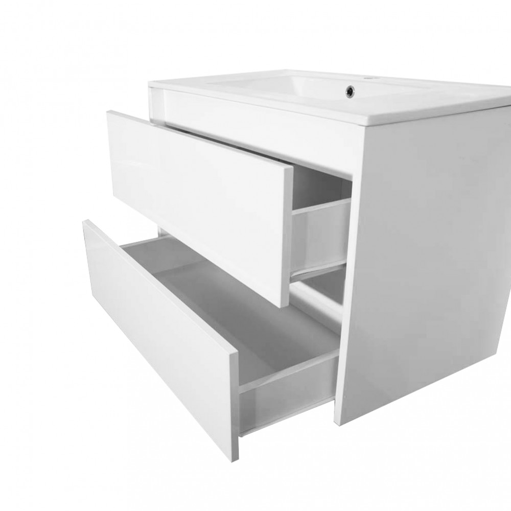 Porto 60 alsó fürdőszoba bútor mosdóval tükörfényes fehér színben