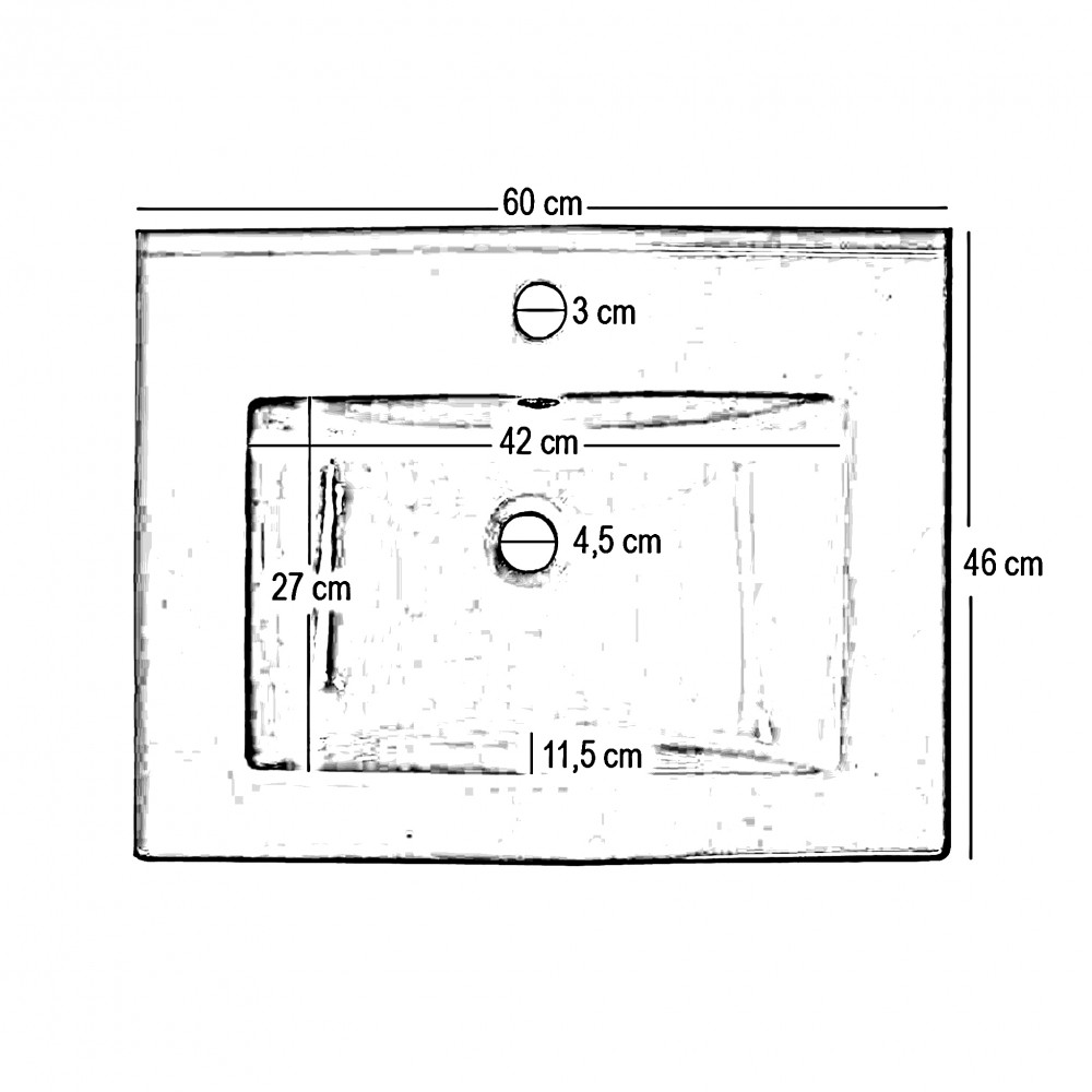 A csomag részét képzi egy méretben passzoló kerámia mosdó is, így ezt nemkell külön beszereznie. A mosdó elkészítésekor kiváló minőségű kerámiát alkalmaztak, ezzel garantálva az időtállóságot. A mélymedencével ellátott mosdóban egy csaptelepnek van kialakított hely.