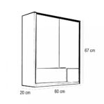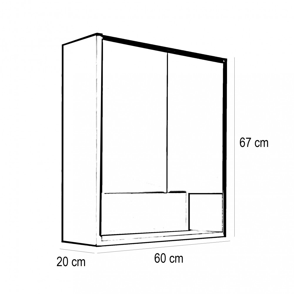 A felső bútorban az ajtós szekrényen kívűl egy nyitott polc is megtalálható, ezzel még kényelmesebbé téve a használatát. A termék tagadhatatlan előnye, hogy alsó és felső bútorának köszönhetően akár további bútorok beszerzése nélkül is minden igénynek eleget tesz. A termék magas minőségű bútorlapból készül és színben passzoló élzárókkal van ellátva. A fürdőszoba bútor felfüggesztett kivitelben kapható.