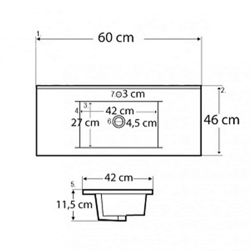 A csomag részét képezi egy méretben passzoló kerámia mosdó is, így ezt nem kell külön beszereznie. A mosdó elkészítésekor kiváló minőségű kerámiát alkalmaztak, ezzel garantálva az időt állóságot. A mélymedencével ellátott mosdóban egy csaptelepnek van kialakított hely.