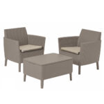 A Curver Salemo kerti bútorkészlet tartós és ellenálló anyagból készül, amely jól viseli a változó időjárási viszonyok, az UV-sugárzás és a hőmérsékleti amplitúdók hatásait. Nem igényel karbantartást vagy speciális ápolási termékek használatát, ami pénzt takarít meg. Vizuális oldalról nézve a bútorok jól néznek ki. A skandináv stílus ihlette univerzális kialakításuk és a cappuccino színek azt jelentik, hogy megtalálhatóak minden elrendezésben, mind a hagyományos, mind a modern. A dohányzóasztal teteje tartós és ellenáll a változó időjárási viszonyoknak, amely stílusosan néz ki. Textúrája sima . A gyanta megvédi a terméket az ultraibolya sugárzás, a rozsda vagy a rothadás hatásaitól, így a készlet sok évszakra szolgál, anélkül, hogy elveszítené eredeti megjelenését.