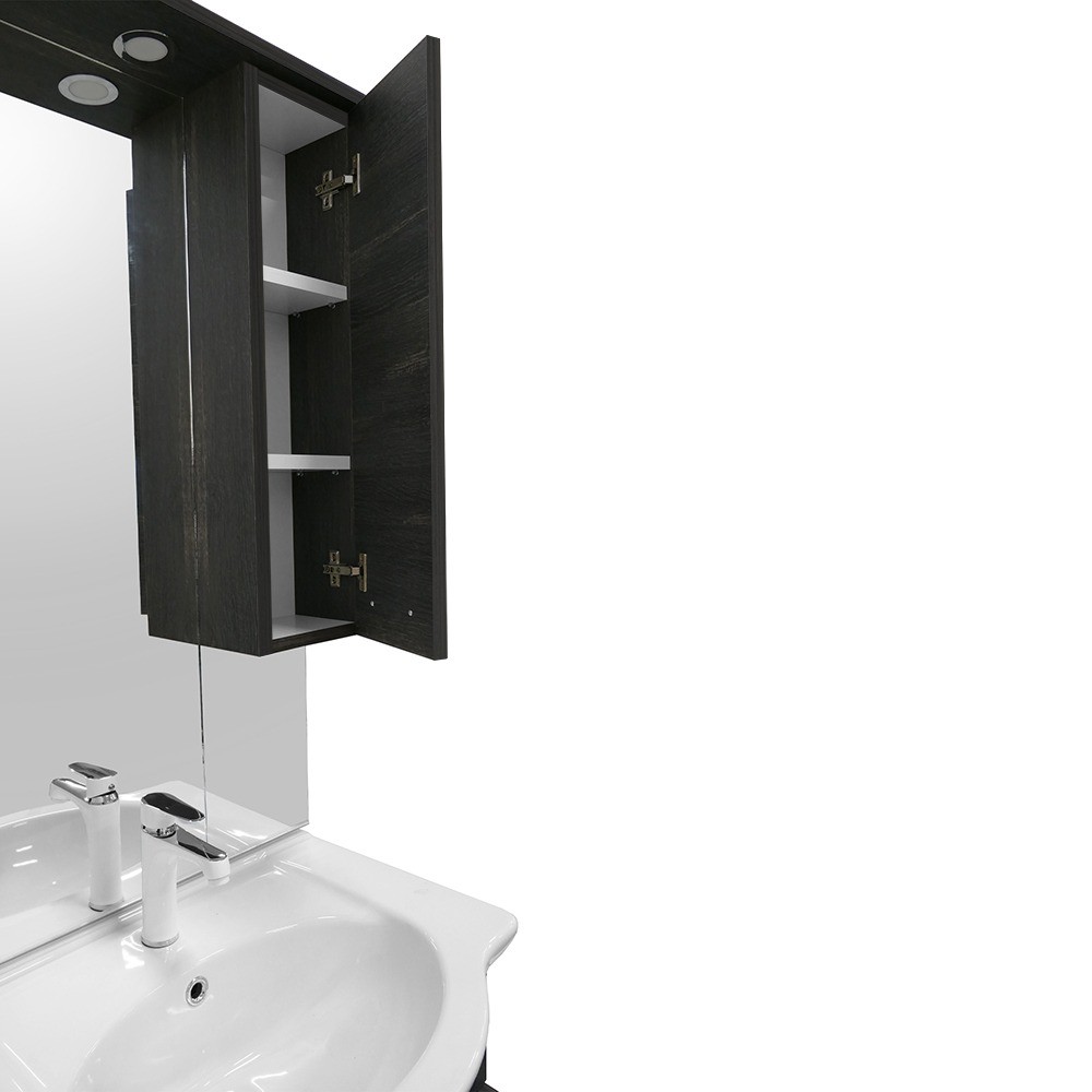 A fürdőszoba bútor kevés helyet foglal, tágas felső bútorban kényelmesen elférnek a fürdőszobai pipere eszközök. Kevés helyigénye miatt kisebb fürdőszobák berendezésére is alkalmas, például panel lakásokban. A termék magas minőségű bútorlapból készül és színben passzoló élzárókkal van ellátva.