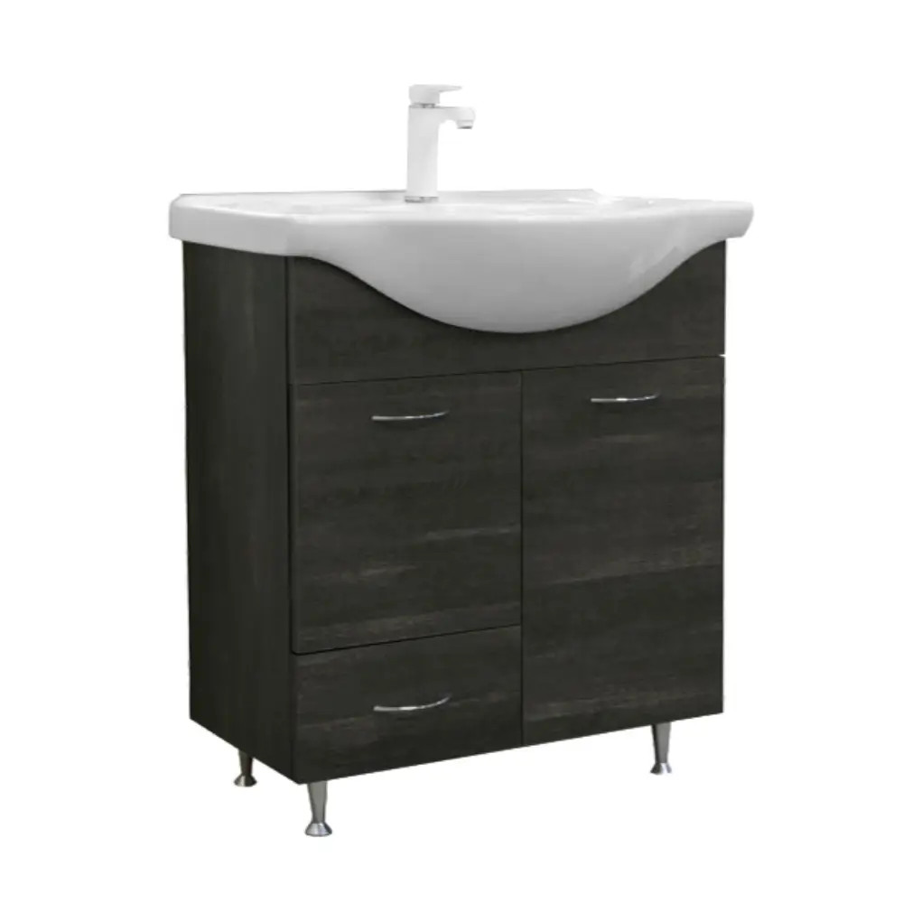 TermékleírásA Vanessa 75 alsó szekrény harmóniát teremt az Ön fürdőszobájában is! A fürdőszoba bútor kevés helyet foglal viszont tágas szekrénnyel rendelkezik ahol kényelmesen elférnek a fürdőszobai pipere eszközök. Kevés helyigénye miatt kisebb fürdőszobák berendezésére is alkalmas, például panel lakásokban. A termék magas minőségű bútorlapból készül és színben passzoló élzárókkal van ellátva.A terméket összeszerelve szállítjuk így nem kell aggódnia az összeállítás miatt sem. A bútor frontja MDF vákum fóliás bevonattal is elvan látva ennek köszönhetően tökéletesen vízálló. Termékjellemzők :2 ajtóval, 1 fiókkal igényes fogantyúval ellátvaLábazattalFront (ajtó) : MDFKorpusz ( test ) : bútorlapGarancia : 1 év A funkcionalitás mellett természetesen a bútor megjelenésére is nagy figyelmet fordítottak.Fekete Freya tölgy színének és klasszikus vonalainak köszönhetően harmóniát teremt az összes fürdőszoba hangulatában. A csaptelep dekoráció, nem tartozéka a terméknek!